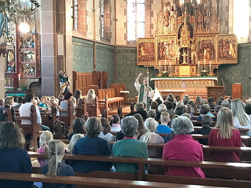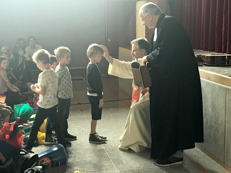 In der Woche, in der die Schule in Baden-Württemberg wieder losging, fanden im Klettgau auch wieder gottesdienstliche Feiern im ökumenischen Geist statt: am 10.9.2018 um 8.45 Uhr in Griessens katholischer Kirche für die Schülerinnen und Schüler der Grundschule Griessen; am 11.9.2018 um 8.15 Uhr für zehn Fünftklässler und ihre Eltern in der Gemeinschaftsschule Klettgau; am 12.9.2018 um 8.00 Uhr für alle Erstklässler und ihre Eltern und Großeltern in der St.-Georgskirche in Erzingen und am 14.9.2018 um 9.30 Uhr in der Gemeindehalle in Griessen für alle Erstklässler mit ihren Eltern und Familien. Alle ökumenischen Feiern waren wie die Jahre zuvor sehr gut besucht. Pfr. Dr. Kaiser erteilt an der Gemeinschaftsschule Religionsunterricht in den Klassen 8 und 10, wobei auf eine konfessionelle Trennung wie in den vergangenen Jahren in der Gemeinschaftsschule verzichtet wurde.
